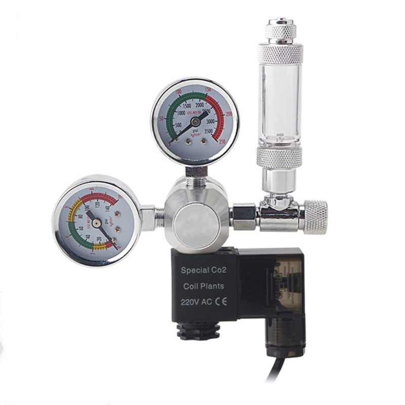 Aquarium CO2 Regulator Magnetic Solenoid Check Valve Fish Tank CO2 Pressure Reducing Valve DIY CO2 Control System Kit 220V 110V